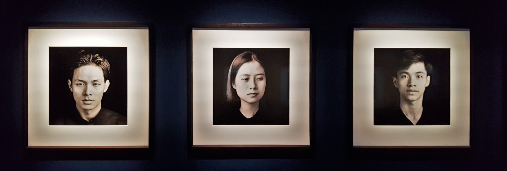 À l’entrée, des visages juvéniles, lisses comme la surface de pierre polie. Sur le mur d’en face, des visages matures aux traits graphiques mais non-moins sereins. On est saisi par la simplicité et la profonde humanité qui se dégagent des œuvres. Jean-Baptiste Huynh est un portraitiste de talent.