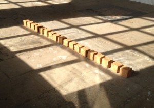 « Poussière, tu redeviendra poussière » pourraient annoncer ces blocs de terre cuite. Elles sont pourtant muettes comme une gravure de mode. « Age18/180cm/46kg » les blocs ont les mêmes mensurations que Simona Andrejic, le top-model qui les a inspiré : 18 cubes de 46 kg au total alignées sur 1,80m.