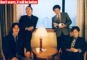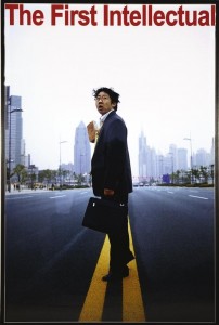 Dans un appartement, ils représentent la classe moyenne chinoise. La phrase écrite en blanc sur fond rouge au coin de chaque photographie (Dont worry, it will be better) change pourtant le sens de leur attitude sereine ou impassible. Le bonheur que montrent les photographies se transforme en doute à la lecture de cette légende. Ce même doute existentiel semble toucher ce First Intellectual issu d’une autre série de Yang.